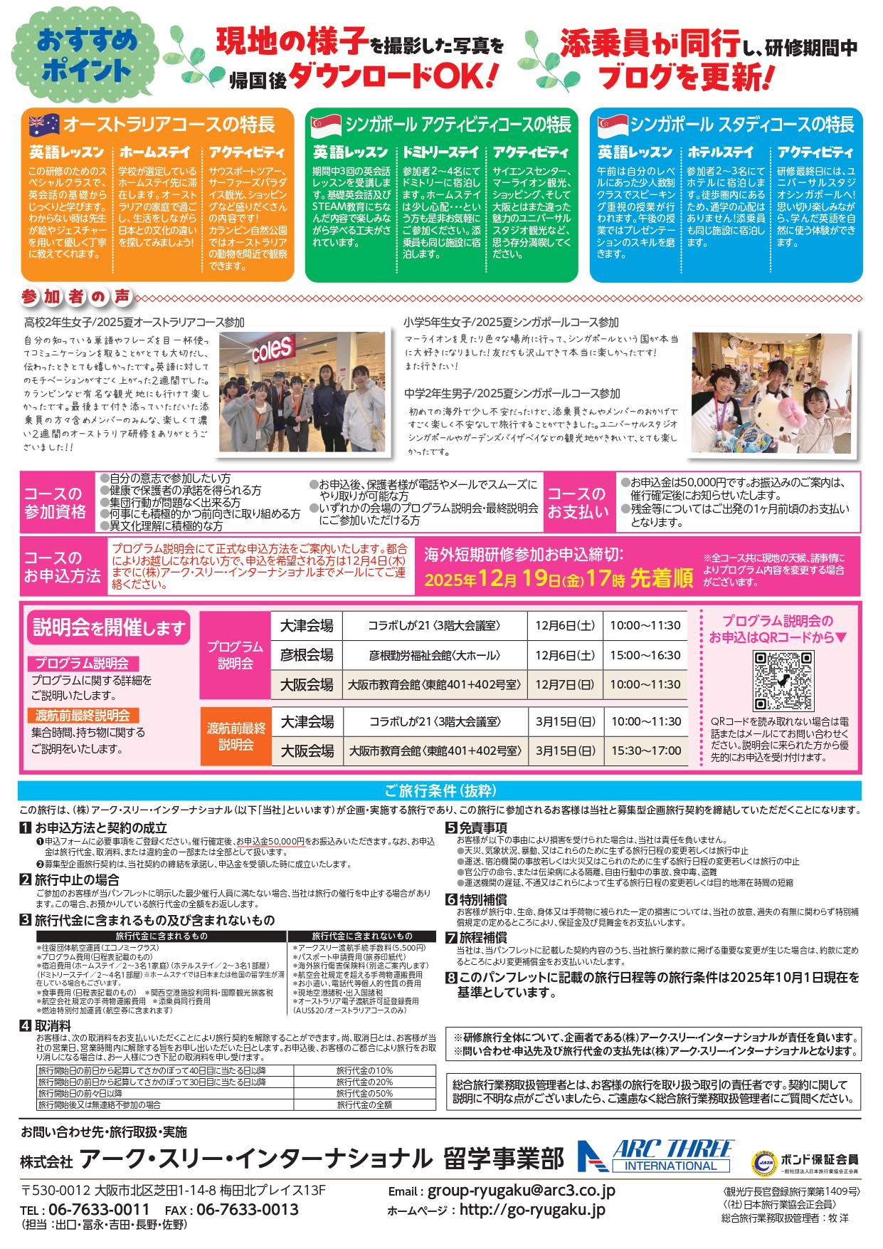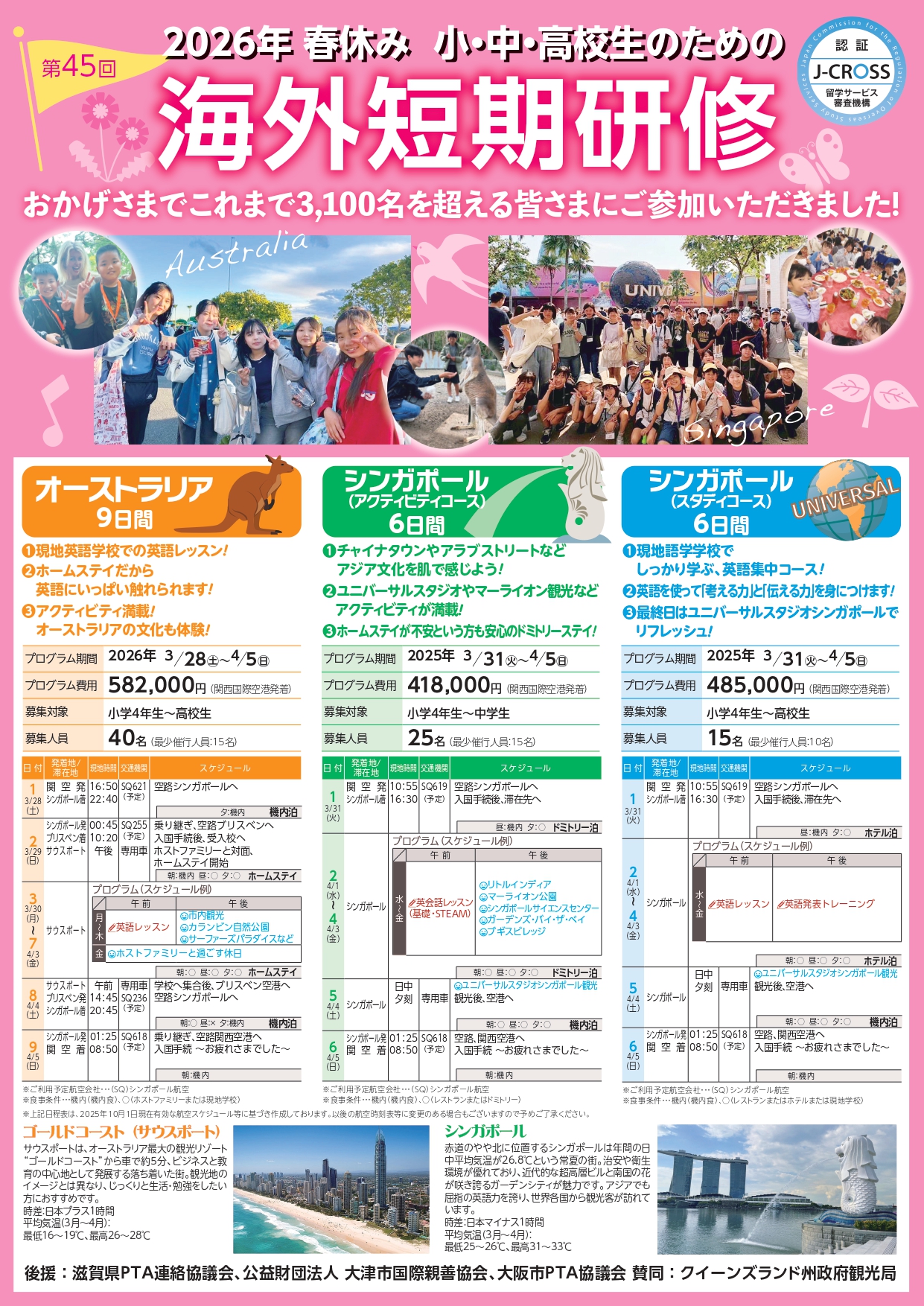 🌏2026年春休み 小中高生対象・海外短期研修 参加者募集!